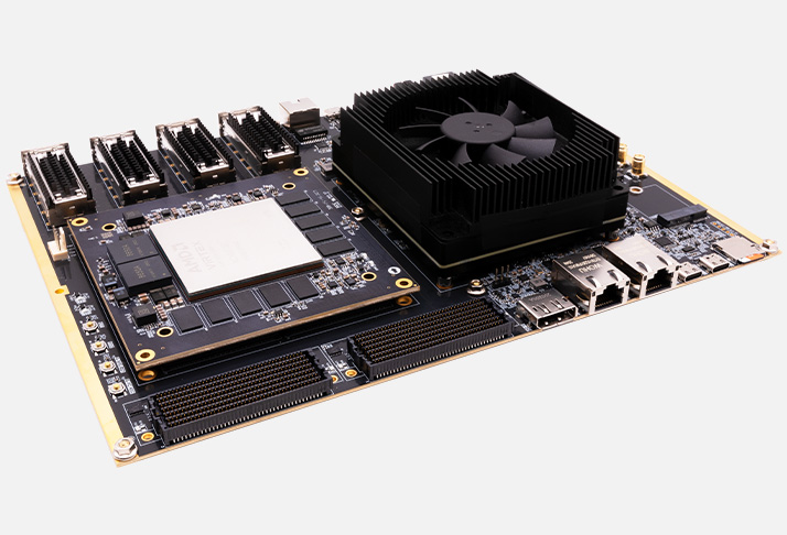The HEA13 integrates Xilinx Virtex Ultrascale+ FPGA with NVIDIA Jetson AGX Orin/Thor via PCIe Gen3 x8. It features 20GB DDR4, four QSFP28 (100G) ports, and AI compute up to 2070 TOPS. Ideal for robotics, autonomous driving, edge AI, and data center acceleration.
